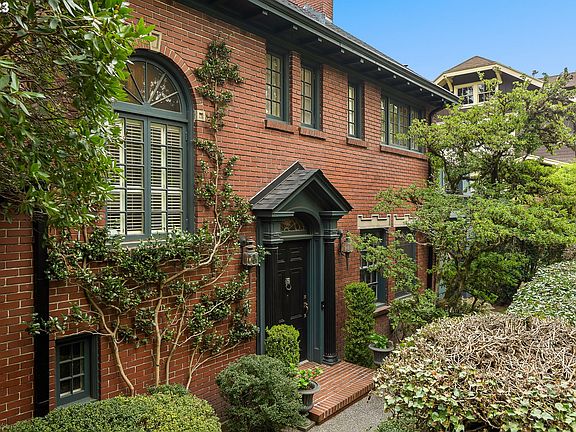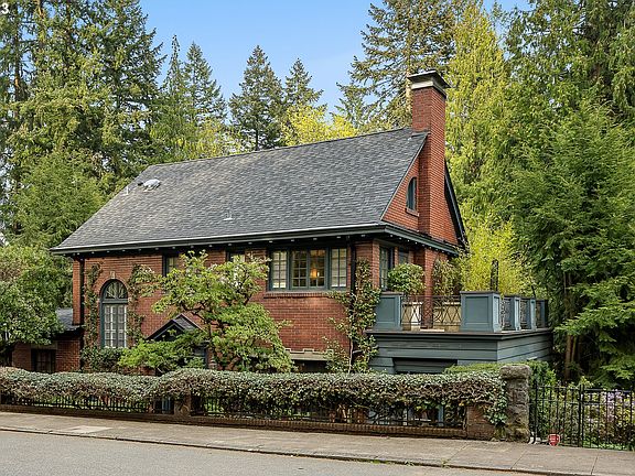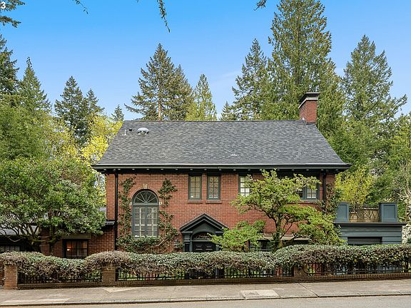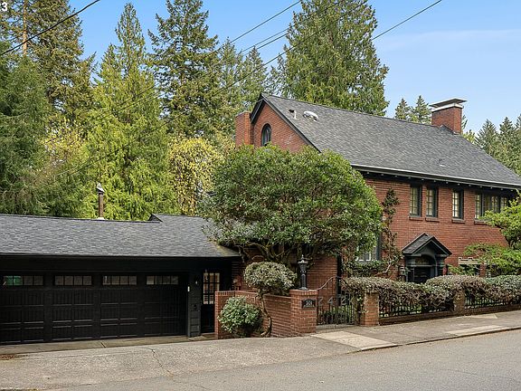 OPEN HOUSE Saturday 6/24 12-2pm. Rich with architectural detail, this brick colonial designed by Ellis Lawrence is set on nearly a quarter acre of lush grounds masterminded by the talented Michael Schultz. Classically formal rooms with oversized windows set perfectly to admire the terraced yard that is surrounded by soaring trees, backing to the Marquam Nature Preserve. Relax in the elegant library, or enjoy one of three fireplaces. Remodeled kitchen with gorgeous Carrera marble, new Sub-Zero fridge, and farmhouse sink. Second floor features a generous primary suite, 2nd bedroom, and full bathroom. Third floor hosts 3rd bedroom, office area with built-in desks, and sitting area, as well as a cedar lined storage room. The lower level bonus room is perfect for movie nights but could also be separate living quarters as it has a bedroom (non-conforming), full bathroom, and exterior entrance. Fantastic cedar lined storage and built-ins throughout. Step outside into your own private oasis. Sit on the cozy brick patio, fire up pizza in the outdoor pizza oven, or relax next to the bubbling water feature. Incredible proximity to both the Marquam nature trail and Portland amenities make this home feel in the city, yet away from it. Top-rated schools! New 50 year roof, newer furnaces and A/C! [Home Energy Score = 1. HES Report at https://rpt.greenbuildingregistry.com/hes/OR10214747]