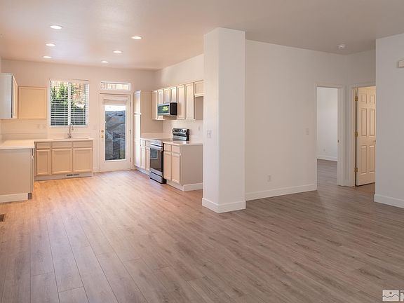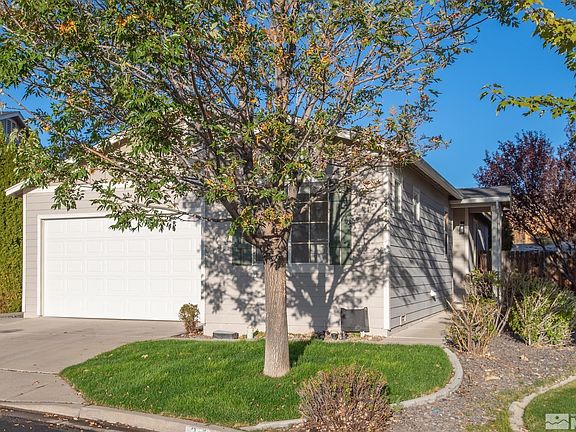 COMPLETELY REMODELED SINGLE STORY HOME IN NW RENO W/PRIVATE BACKYARD PATIO! This newly upgraded open concept home includes new luxury vinyl plank flooring, 4” square baseboards, modern light fixtures and recessed lighting, fresh interior paint, and a new beautiful kitchen with white quartz kitchen countertops, freshly painted cabinets, a new stainless sink, disposal and high arc faucet, and new stainless-steel appliances including a Wi-Fi-enabled Samsung oven and low profile over-the-range microwave!, Additional interior upgrades and features include new bathroom counters, sinks, faucets, mirrors and lighting, closet shelving, lots of natural light, and a separated bedroom from the main living ideal for an office or guest! The extra tall 2 car garage has been freshly painted and finished with a heavy-duty hanging storage rack as well as a new garage door that was installed in 2023. The lot is the largest lot of its immediate development with a wedge shape that provides a lower maintenance front yard and larger back and side yards for recreation, relaxation, and entertaining on the large patio. The property includes a sprinkler system, fresh sod and grass seed, raised garden beds, and no rear neighbors as the property backs to open space! The ideal location of this property provides quick access to shopping, freeway/commuting routes, the University of Nevada Reno, K-12 schools, and hiking and biking trails! Click on the virtual tour link to walk through a 3D tour of the home today! Some photos have been virtually staged to demonstrate the size and functionality of the spaces.