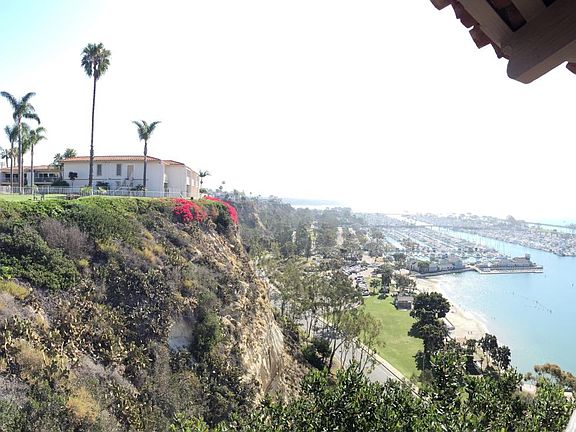 Fully furnished and available to rent for a month or longer. Step out of this serene condo to a million dollar Dana Point Harbor and ocean view! Resort like complex on the cliff above the harbor, on ocean side of PCH on Santa Clara Avenue, the most cherished street in Dana Point. This main floor unit features a large living/dining area, patio, two bedrooms and two full bathrooms. Individual laundry area with storage. The complex features beautiful grounds and a pool/spa. Walk to everything in The Lantern District including restaurants, shops, coffee, fitness centers, the harbor, etc. Located steps away from the Headlands trails & nature preserve. Two secure, covered parking spaces are included. Beautiful views of the pool & the headlands from the condo.