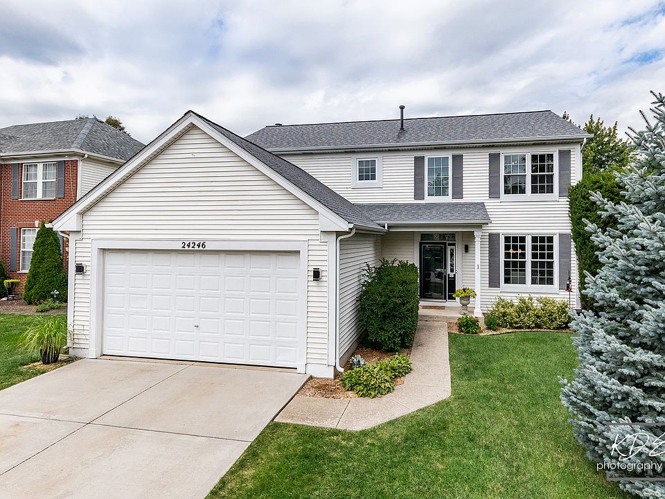 This is The One!! North Plainfield, Beautiful Private Backyard Retreat, So Many Updates. Five Bedrooms, 3 full, 1 half baths, Finished basement, Main floor office. NEW Kitchen Appliances, Fresh Paint, New Flooring.....Don't miss this great home. Terrific corner lot with concrete driveway. Entering the home you are greeted by an open foyer with feature wall, spacious living and dining areas for entertaining. The updated kitchen has painted cabinets, quartz countertops, new backsplash, moveable island, new lighting and BRAND NEW appliances. The family room has been refreshed with a fantastic custom fireplace facelift. The main floor office is perfect for a home office or playroom. The mud room off of the garage has the hook ups for washer and dryer but this owner moved the laundry to the finished basement leaving the mud room open for a great landing space and excellent storage. The upper level has 4 bedrooms, 2 full baths and linen closet. The primary suite has a fantastic custom closet upgrade and a cozy extra sitting room for relaxing and quiet time. The finished basement has a workout room, bedroom, full bath and spacious family room with a bar for entertaining. This homes upgrades include: Solid doors, fresh paint, new hardwood floors, new kitchen appliances, new roof/gutters in 2019, all new windows in last 3-5 years, radon mitigation system. Now for the amazing backyard.....You will love the huge covered patio with ceiling fans(covered structure built so that you can enclose it if you ever wanted to), Awesome dog turf(perfect for pets and children to play on)NO muddy paws or dirty shoes, Tranquil large stone water feature for quiet relaxation, Private natural red cedar tree-line that creates an enclosed yard, Spacious Shed too. Schedule your appointment today and be in your new home for the upcoming holidays.