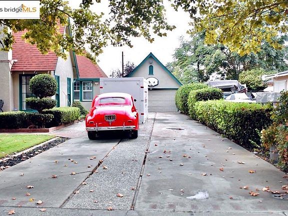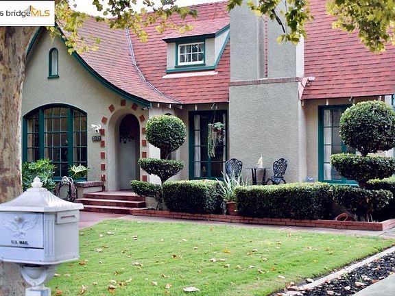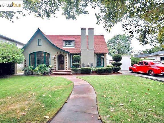 Embrace the charm of this remarkable Tudor-style 3 bedroom, 2 bath home in the heart of Hughson. This home offers graceful arched doorways, warm hardwood floors, and sunlit living spaces, every detail tells a story of craftsmanship and care. The inviting living room features a classic fireplace framed by picture windows, while the formal dining room opens to a bright, cheerful kitchen. The spacious primary suite includes a private vanity nook and serene backyard views. Upstairs, flexible bonus rooms provide perfect spaces for an office, guest area, or creative retreat. Outside, entertain or unwind under the covered patio, complete with a built-in brick BBQ and lush garden setting. A detached two-car garage with workshop potential adds both function and charm. Set on a large 9,147 sq ft lot on a tree-lined street, this home beautifully blends vintage character with comfort — a rare opportunity to own a true Hughson treasure.