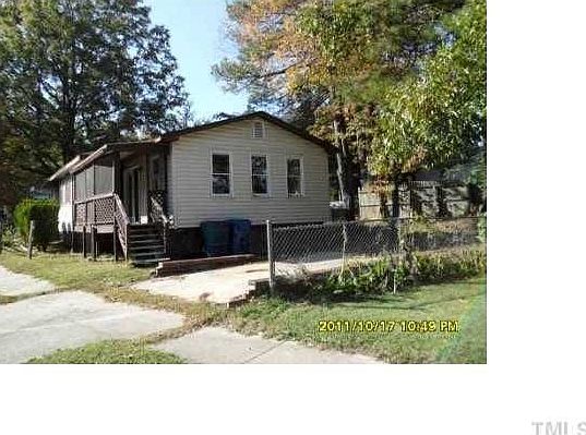 Great potential for home located near NCCU. Corner homesite with front porch, screen poch on side and entry ramp. Playroom at back of home could be 3rd bedroom. Bank owned sold as is. Need new HVAC and plumbing pipes, call listing agent for details.