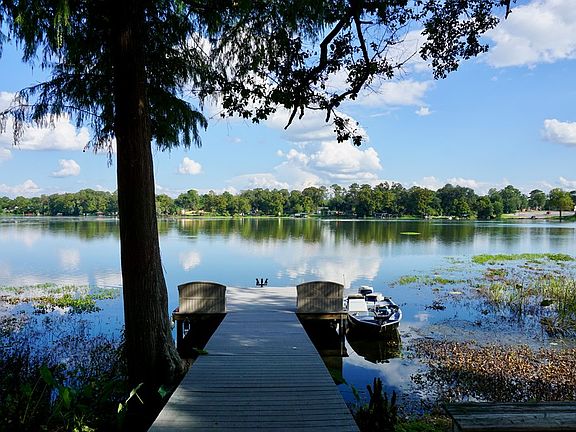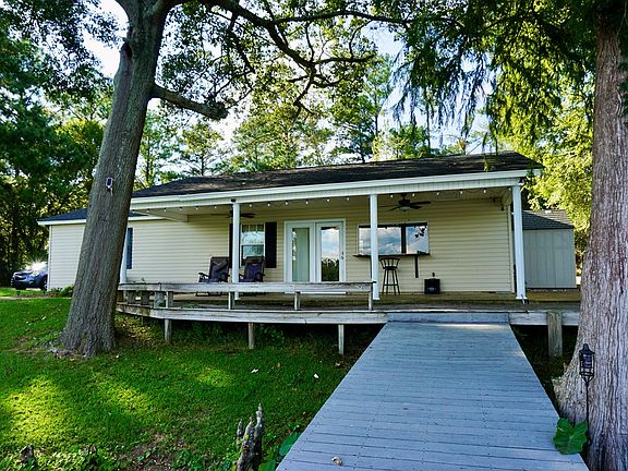 Back on the market due to no fault of the seller! Take a look at this amazing deal! Waterfront home with an in-ground pool for under $160,000! Located right on the water, this house has a great back porch and a dock perfect for fishing or just relaxing and enjoying the view. In addition to your relaxing view, you have a huge pool in the front yard with a brand new liner! Cozy home with one bedroom and one bathroom, great open floorplan, and wonderful views of the water. Fenced in yard with electric gate, circular driveway for easy access in and out, roof replaced in late 2018. This is absolutely a Fisherman's dream or even possibly a great Air BnB! Call today to make an appointment to see this wonderful waterfront property at a great price point!
