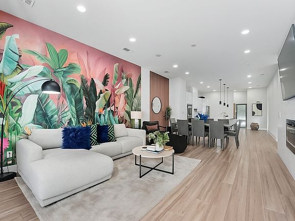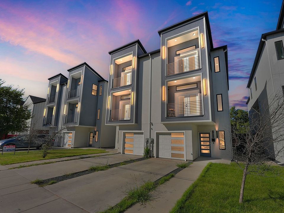 Luxurious, contemporary, 4 bedrooms, 4.5 baths with 2 car tandem garage. Incredible natural lighting with a perfect blend of warmth and modern luxe design. First floor layout: Garage, wood look tile on first floor, secondary bedroom with full bath. Bedroom opens to patio and backyard. Second floor: Going to up to second floor wood floors on stairs and through out 2nd floor open living concept. Kitchen with sleek, European-style cabinets, quartz countertops with breakfast bar. Refrigerator and double oven. Living room with Downtown views, fireplace, balcony. Secondary bedroom and full bath also located on the 2nd floor. Third floor: Third floor wood floor with spacious master bedroom views of Downtown and the setting sun. Gorgeous master bath. Additional bedroom with full bathroom. Laundry room and stackable washer and dryer. Close to Bishop Arts, Downtown, Sylvan 30 and Trinity Groves.