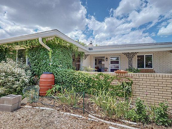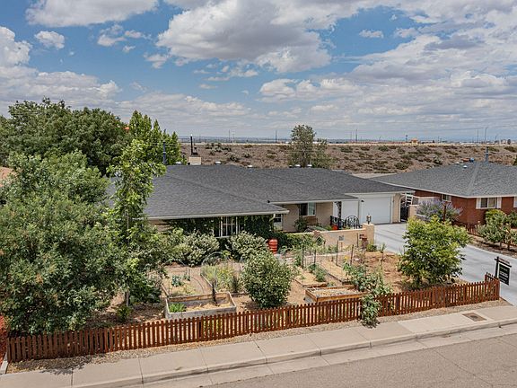 Fabulous Netherwood Park home with your own URBAN FARM! A sweet courtyard greets you as you enter the bright, roomy entryway with gorgeous hardwood floors. This spacious home has two living areas, one is perfect for a sunshine-filled home office or playroom for the kids with a view of the courtyard! Newer roof, windows, refrigerated air, updated bathrooms & kitchen with granite countertop, subway tile, convection oven. A private garden oasis backyard with a covered porch and a 6-foot wall (7 feet on the back) adds more privacy and security. Chicken coop, gardens, grape vines, fruit trees, roses...too much to list! This fabulous home is just a stone's throw from the North Diversion Channel Bike Trail that goes from UNM to the Balloon Fiesta! Nearby north campus, golf course, & tennis club.