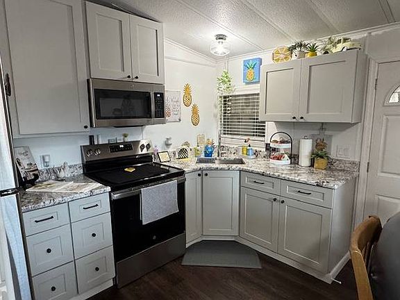 This 2-bedroom, 2-bath home has been remodeled in the last year with so many upgrades! All appliances are less than 1 year old. A new A/C unit was installed in 2024 and comes with a 10-year transferable warranty. The entire home has been furnished with luxury vinyl plank flooring. The new kitchen is equipped with soft-close cabinets and drawers and a beautiful granite countertop. The dining area allows for a 4-6 person table and chairs, and is located by three large windows that bring in plenty of Florida sunlight. Enjoy your morning coffee in the large air-conditioned 10x12 Florida room. Every window in this home has been updated with energy-efficient Thermopane windows and custom blinds. In addition, all south and west-facing windows have been tinted to reduce heat and glare and help lower cooling costs. The guest bath has been completely remodeled with a new tub/shower enclosure. The tub is outfitted with a safety rail. A new vanity, sink, vinyl flooring, and new toilet round out this gorgeous update. The nicely sized master bedroom includes a large walk-in closet and an adjoining ensuite. The bathroom boasts a remodeled walk-in shower, a new vanity, vinyl flooring, and a new toilet. The guest bedroom is good size and contains ample closet space. The front of this home faces south and is prime for garden landscaping. The washer and dryer are in the massive 8x14 shed/workshop. It is the perfect area for additional storage. Attached to the shed is a 12x13 screened lanai with vinyl windows. The back of the house features a concrete slab patio area for enjoying an evening breeze. This home has plywood subflooring, so no structural issues are present. This 888 sq ft unit is situated in Beacon Terrace, Lakeland's PREMIER-RATED 55+ community that is conveniently located in southwest Lakeland near the Polk County parkway, which connects Lakeland to Orlando or Tampa via I-4. This sanctuary is also located minutes away from Lakeside Village and Oakbridge Shopping Centers, which have numerous restaurants, shops, grocery stores, department stores, a movie theater, banks, medical centers, and much more. Historic downtown Lakeland, along with the new Bonnet Springs Park, and the RP Funding Center are located just 3 miles north. Beacon Terrace is an active 55+ community and has many activities, including Bingo, a Golf Chipping Range, a nature trail, bowling, shuffleboard, crafts, and much more. Don't wait. Call today to schedule a showing! All listing information is deemed reliable but not guaranteed and should be independently verified through personal inspection by appropriate professionals. Our company does not and cannot guarantee or warrant the accuracy of this information or the condition of this property. Measurements are approximate. The buyer assumes full responsibility for obtaining all current rates of lot rent, fees, and pass-on costs. Additionally, the buyer is responsible for obtaining all rules, regulations, pet policies, etc., associated with the community, park, or home from the community/park manager. Our company is not responsible for quoting said fees or policies. Financing is available through 3rd party lenders. The sales price does not include tax, dealer fees, or administrative fees. Please contact the sales agent for additional information.