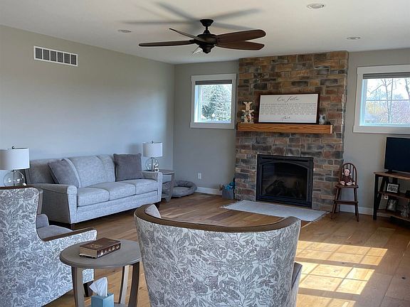 Discover your oasis in this stunning house built in 2020, on a huge (over ½ acre) corner lot, boasting a sprawling backyard, beautiful landscaping, complete with an irrigation system, perfect for cultivating your own garden retreat. Desirable .6 acre lot only 5 minutes to downtown. Step inside to find 9’ ceilings throughout, a floor-to-ceiling stone gas fireplace with an abundance of natural light, remote-controlled blinds adding convenience and elegance. Quality craftsmanship shows with solid wood doors, soft-close doors/drawers, gorgeous hickory wood flooring, ceramic tile and details throughout. The kitchen showcases quartz countertops, large island, beautiful cabinets with large pots&pans drawers and pantry, ideal for culinary enthusiasts and opens to the large patio through sliding glass doors. Indulge in the luxurious walk-in shower, ceramic tile and dual closets in the master bedroom, offering ample storage space and comfort. The expansive 1500 sqft finished basement with 9-foot ceilings presents endless possibilities with an egress window with remote blinds. Basement also has its own bath. The main floor mud room laundry ensures convenience. Plus, a three-car attached garage with exceptional flooring provides ample space for vehicles and storage. Don't miss the chance to make this your dream home!