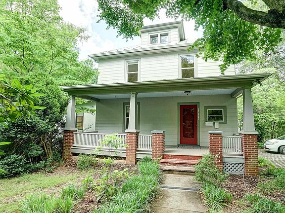 Located on 1+ acre with lush landscaping providing privacy and year-round color, garden space, garage & off-street parking! Beautiful downtown home with stunning addition (2020), detached, income generating cottage, and detached 2-car garage with studio/office space in the charming Frys Spring neighborhood of Charlottesville. Solar panels provide 100% of electricity depending on the season. This unique custom home features original hardwood floors throughout the main house, with a large living room that opens to the formal dining room. The newly added kitchen features quartz countertops, white cabinets, high-end Kitchenaid appliances and an eat-in breakfast nook. Main level living with the expansive light-filled primary suite that features a luxurious spa-like bathroom, walk in closet and screened porch access. Upstairs three generously sized bedrooms share a full hall bathroom, and a fourth bedroom could be converted from a built-in closet back to a fifth bedroom if desired. The detached 2-car garage features a ground floor office/workout space, half bathroom and loft area, and the income-generating 2 bedroom cottage features a kitchenette, full bathroom and living room. Off street parking in driveway for 4 cars!