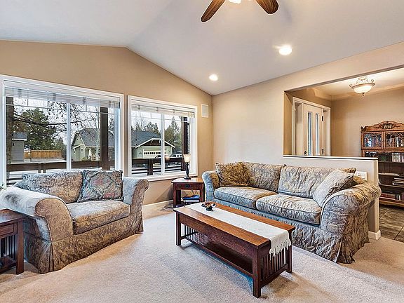 Open living plan, 3 bedroom, 2 bath, 1,626 square foot, single level home on Bend’s highly desirable Awbrey Butte. Ideally situated in quiet, low traffic neighborhood with easy access north and south onto Parkway and in walking distance of downtown, river trails and several parks. Home has been immaculately cared for by original owners (built in 1999). Beautiful tile floors and counter tops throughout. Kitchen peninsula has space for casual dining. Open dining space accommodates a large table for family gatherings. The living room features vaulted ceiling, built-in entertainment center with surround sound stereo, ceiling fan, and gas fireplace. Master suite has vaulted ceiling, his and hers walk-in closets, ceiling fan and stereo speakers. A private door leads to the rear patio and spa. Professionally landscaped backyard paradise was highlighted in Bend Living. Landscaping reflects an Asian influence with soothing water feature, sculpted trees, rock gardens, custom wood gates, stone paths. Relax to stereo sound under the covered patio or in the hot tub/spa. Gas connection enables grilling on the BBQ or warming around a fire pit. Backyard enclosed by a maintenance-free, masonry block privacy wall. The over sized 2-car garage also has stereo sound and abundant attic storage. No HOA. All appliances included. With its ideal location, mature landscaping and single story floor plan, this home won't be on the market long. *Buyer's agents welcome Contact: Vicki (541.350.4328)