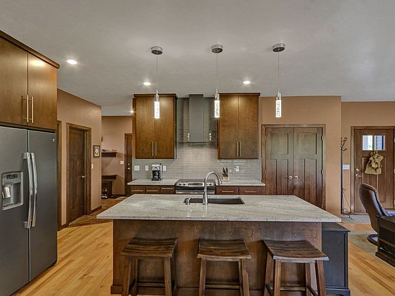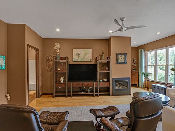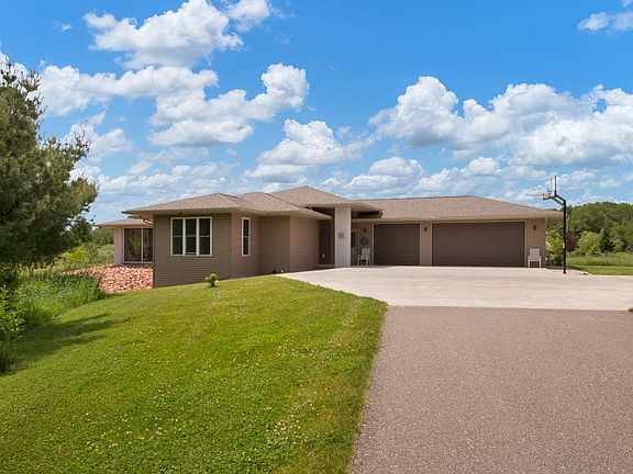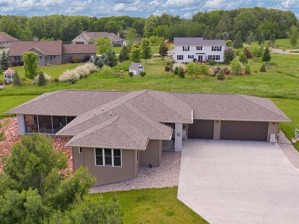 Modern elegance and impeccable quality are unsurpassed throughout this masterfully designed 4 bedroom, 3.5 bath ranch home situated on 2.79 EXTREMELY PRIVATE ACRES. Fantastic open concept floor plan, with premium finishes!!! Maple hardwood in rich dark finishes, engineered hardwood floors, Prestige custom cabinetry, granite kitchen counter tops and a large island with granite undermount sink and backsplash that is adorned with subway tile providing an ere of sophistication. Designated "elevator ready" closet if an elevator is needed in the future. Additional amenities include: Volume ceilings, Zero-threshold entrances, 3-season room overlooking the private conservancy garden, lower level in-floor heat, walk-in bedroom closets, walk-in pantry and more. Expansive master suite boasts a stately private bath that includes a large twin vanity, cast iron soaking tub and roll-in shower completely enclosed with gorgeous custom tile work. This smart design features a walk-thru master closet leading to the laundry room...brilliant! Lower level finishing includes two massive bedrooms with walk-in closets, expansive family room and a third full bath. In-floor radiant heat throughout finished areas of lower level. Home includes a long shared driveway but is extremely private.