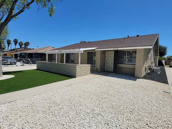This charming 2 bedroom, 2 bathroom, 2 car garage home features a front and backyard, newer appliances, flooring, and paint. The upgraded features throughout the property provide a fresh and inviting feel. Enjoy the convenience of appliances, including a refrigerator, stove, dishwasher, microwave, washer, and dryer. With ample space and convenient location just less than 1 mile from your favorite shipping stores, this property is perfect for those seeking a comfortable and cozy living space. Don't miss out on this opportunity - schedule a showing today!