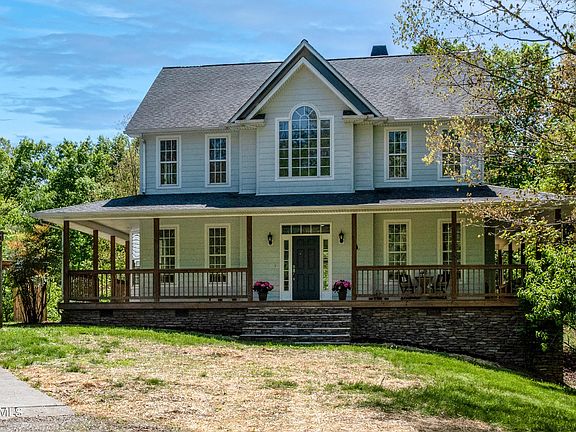 Looking for a property that offers the ultimate privacy? This secluded two story home w/ wrap around porch is nestled in the woods and backs up to over 1000 acres of the State of Tennessee's Foothills Wildlife Management Area. Total Peace and quiet is offered in this fully renovated home on 6 acres. Primary Suite on either the main level or the upper level both w/ spacious walk in closets. Upstairs also has another bedroom and bonus room with closet. Gorgeous newly refinished hardwood floors on the main level. Main level also boasts Foyer and Great Room with soaring ceilings and fireplace. Updated kitchen w/ granite tops, new stainless appliances and both breakfast bar and breakfast nook Convenient Laundry Room with exterior door leading to porch. Main level primary bathroom has been updated with new flooring, vanities and lighting. Home can be heated by the current HVAC systems or switched over to the wood burning boiler system which can heat the additional living quarters also. Detached garage and two car carport with second living quarters upstairs featuring new carpet, kitchenette and full bath (616 sq. ft of the total finished sq ft). Huge 2400 sq. ft Metal workshop w. 2 oversized garage doors, separate electrical panel and plumbed for full bath. Beautiful fenced pasture land in front of property near workshop. A must see to appreciate all that this property has to offer! For information on use of and hunting regulations of the Wildlife Management area visit https://www.tn.gov/content/tn/twra/wildlife-management-areas/east-tennessee-r4/foothills-wma.html