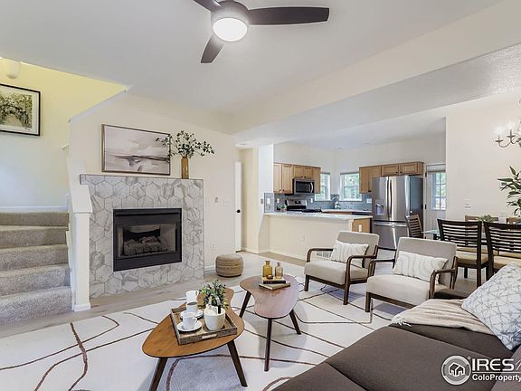 Welcome to this bright END-UNIT townhome in the desirable Southwest Longmont - quiet, tucked away on a cul-de-sac. NATURAL LIGHT floods the expansive living and dining areas, and the fireplace invites you to cozy evenings at home. The kitchen is updated with quartz countertops, a NEW 5 burner gas range/oven, and a NEW refrigerator. Upstairs, both bedrooms feature PRIVATE BATHS, and there's upstairs laundry for added convenience. Downstairs, a private bedroom with a full bath offers flexibility for guests, a home office, or whatever you need. ALL NEW carpet! Local coffee shops, restaurants, and nearby trails make it easy to enjoy both community and nature just outside your door. Enjoy LOW-MAINTENANCE living in one of Longmont's most sought-after neighborhoods.