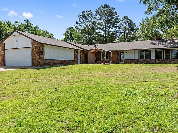 Are you looking for land and convenience? This Ranch Home is located on approximately 3 acres (m/l) of prime land in Oneta, just East of Broken Arrow. The house has undergone extensive renovations, with a roof that is less than five years old, windows that are two years old, new countertops, refinished hardwood floors, new carpet, and new tile. The entire property is fenced with pipe and chain link and is ready for all your animals. There are two excellent outbuildings on the property. One is a workshop with a cement floor located behind the house, equipped with plenty of power and spray insulation. The other is a pole barn located on the approximately 2-acre pasture. The barn has power and water, making it ready for your livestock (including chickens) or garden! The property also has an in-ground storm shelter. The property could be split after purchased.