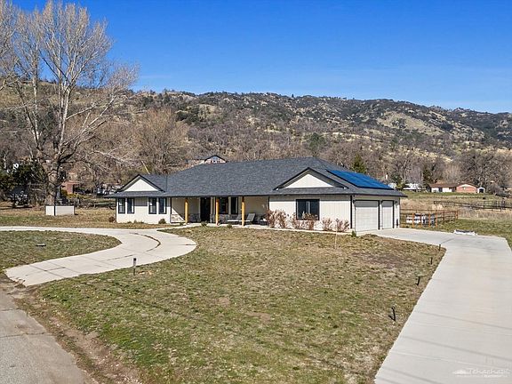 What a find! This Bear Valley Beauty offers over 2400 sq ft, 4 bedrooms, 3 bathrooms, & custom touches throughout. You are welcomed by an added circular driveway that leads to a covered front porch, great for enjoying nature and surrounding views. Large formal entry, Dining area great for entertaining and big enough to fit a large table and more, open living room with fireplace insert and custom shelving for that great personal touch. Kitchen is just perfect...large island, walk in pantry, quartz counters & tiles backsplash to the ceiling, great lighting, & custom cabinetry.Bamboo floors throughout most of the home, tiled bathroom floors. Laundry room off Garage entry, lots of extra storage, full guest bathroom on one side of home near 4th bedroom (which could work great for at home office as it has its own access and separate from other room location), or guest bedroom. All bedroom great in size, Master is oh so nice with doors to backyard. Master bath and walk in closet is a dream come true! Walk in shower, soaking tub, double vanity and large closet. Fenced area in back yard, greenhouse, storage shed too! This home is only a few years old & shows so much pride in ownership. Don't let this one slip awayHorses are allowed and location close to Bear Valley Amenities