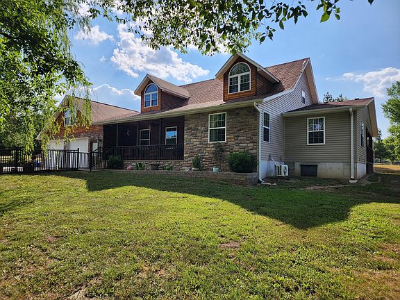 Back on the market no fault of sellers!!! Take a look at this beautiful custom built home sitting on 9 acres less than a half mile to a boat ramp on Pomme De Terre Lake and borders Corp Land. The house has had no expense spared in the construction of this lovely home with 6 inch walls and spray foam insulation and a tasteful mix of wood stone and vinyl siding makes this a real masterpiece.  The home has a open floor plan with awesome woodwork throughout the house. It has a vaulted high ceilings that are absolutely breathtaking. The master suite is located on the main floor with huge walk in closets and a spacious master bath. This house has 3 bedrooms and 2  baths . The kitchen counters and island have soft close doors and drawers as well as granite counter tops and a beautiful backsplash. Comes complete with a gas cooktop and two electric wall ovens, dishwasher as well as a large refrigerator.  The laundry comes complete with a washer and a dryer as well as a soaking sink. There is a attached 30 x 30 two car garage that also has a 7x7 concrete safe room in it. there is a 53 x 12 foot covered back porch that has large ceiling fans for those warm evenings. Staying with the home is a 12x24 newer above ground pool. There is also a 30x50 insulated shop building with three overhead doors and a workbench already built  The shop has110 and  220 wired and set up with Led Lights for all those projects you have been wanting to work on. There is another 24 x 24 garage that has an attached 13x41 attached garage on it for an rv. There is also a 12 x 16 2 story shed in the back yard that has electric. If that's not enough how bout a 14 x 31 pole barn set up for horses with electricity . You will find this home beautifully landscaped with large trees throughout the property including Pine, Redbud, Dogwood, Maples, Weeping Willow Elm and Honeysuckle Vines. Sitting in front of the home is a nice stocked pond with a large windmill setting next to it. Hurry before its gone!