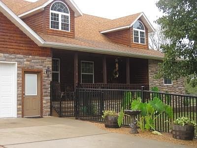 TALK ABOUT GEORGEOUS!!! This 6 year old 1.5 story home offers app. 2650 sq. ft. living area plus a 900 sq. ft. attached garage with a concrete storm shelter that you enter from the garage. Home has Rock, Log and Vinyl siding and a fenced yard. There are 3 bedrooms and 3 baths. Kitchen comes with all appliances, beautiful cabinets with Granite Counter tops and 8x25 covered deck, 12x39 covered deck and a 12x13 covered deck. The large Living room has a Fireplace set up for Gas Logs. Large Master Bedroom with private bath and double closets. Laundry room is on main level. Upstairs has Bedroom, Bath and a sitting area. The 3rd bedroom is 16x30 and located above the garage. There is a detached 30x50 garage with 3 garage doors, concrete floor and electricity. Tehre is a detached 24x24 garage that has an attached 13x41 garage for an RV. There is also a 40x120 open front RV storage for rental income that has 10 bays. 2 story 12x16 shed with a 12x16 lean to and a 14x32 pole barn for horses, etc. Included with this property is 17 mostly fenced acres which is located less than 1/2 mile to Resort Lake Pomme de Terre and fronts State Road. Don't miss out on this one!!!