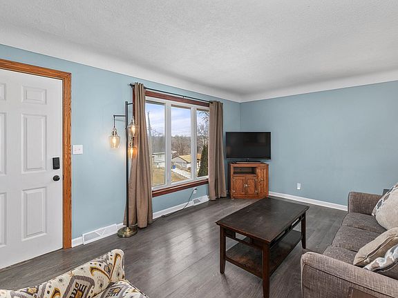Welcome to this beautifully furnished 3-bedroom, 1-bath ranch home, designed to feel like your home away from home! The property features original hardwood floors in the bedrooms, a newly renovated bathroom, and a living room with stunning grey wood laminate flooring and large windows showcasing a beautiful horizon view of a natural wooded tree line.