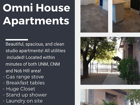 - Exterior features: 10 Minute Walk to UNM & CNM, Friendly Staff, Online Rental Payment Center