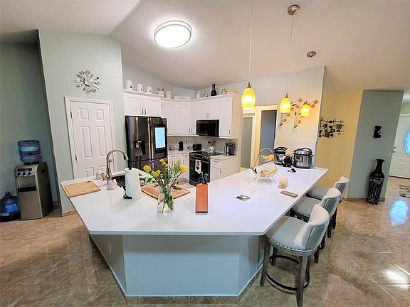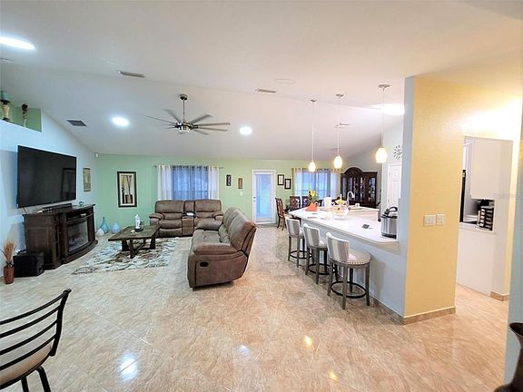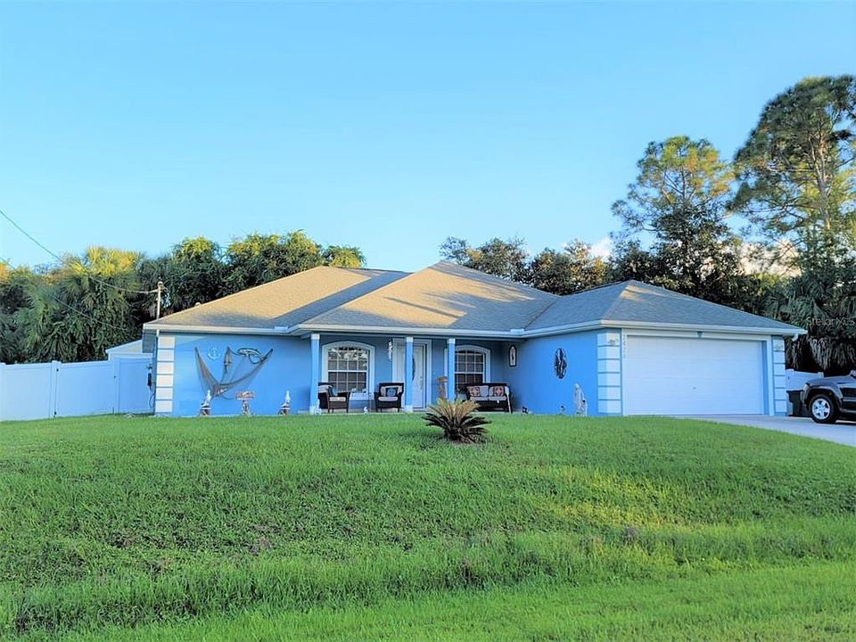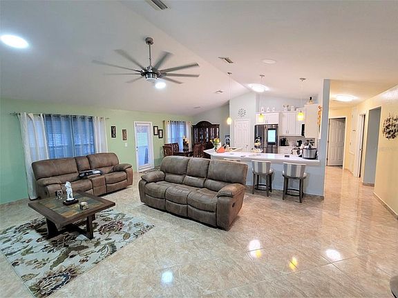 Stunning North Port Home, gorgeously remodeled throughout. When you walk into this home you will fall in love! The kitchen features all new shaker cabinets and quartz countertops with integrated electric outlets. Cooking will be a pleasure everyday with your gourmet stainless steel kitchen appliances and the impressive touch screen smart fridge. This home is tiled throughout the majority of the home with two guest bedrooms featuring all new laminate wood flooring. The spacious layout is open and has split bedrooms, the possibility of a fourth or fifth bedroom is a reality as this home features an office and a dining space that could be completely enclosed to create two additional private rooms. Enjoy the beautiful tropical breeze out in your covered screened lanai, which is also tiled. The water softener/purification system is top notch and runs treated and fully purified water through the entire home!! Additionally, the backyard features privacy fencing and two sheds for plenty of storage. Don't miss out on this beauty!