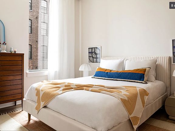 Step into this modern and elegant apartment in the heart of Philadelphia, where sleek design meets timeless comfort. The home features all-white walls and rich hardwood floors that create a bright, airy atmosphere with a classy and inviting feel. Oversized windows fill the space with natural light, making the open living and dining area warm and welcoming.