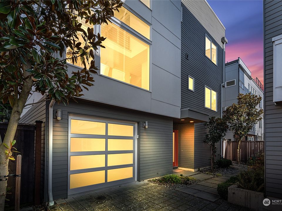 Discover this sleek stand-alone home in the heart of Ballard. Designed for modern living, w/ an open layout, soaring two-story windows, hardwood floors & 3 bedrooms + loft/4th bedroom. The gourmet kitchen showcases quartz countertops, eating space, S/S appliances, & a Bertazzoni gas range. Retreat to a spacious primary bedroom with a huge walk-in closet and spa-like ensuite w/ radiant floor heat, rain shower & soaking tub. Enjoy breathtaking views from the 650+ sqft rooftop deck, great for relaxing or entertaining. Appreciate added convenience of a fully-fenced yard, low-maintenance turf & attached garage. Just steps from Ballard’s best restaurants, shops, & parks, this home offers style, comfort, & a prime location! Walkscore 81. No HOA!