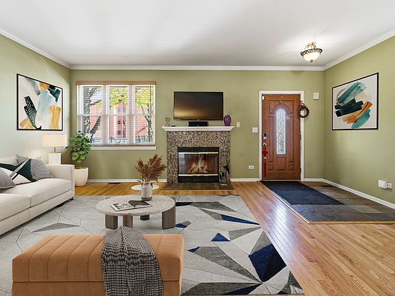 Welcome to this charming 4-bedroom, 2.5-bathroom home in Chicago's Heart Of Italy Neighborhood. Inside you're greeted by an inviting open floor plan featuring hardwood floors and a wood-burning fireplace. The spacious, sun-filled living room flows effortlessly into the dining area and gourmet kitchen, complete with a large island, granite countertops, stainless steel appliances, beverage cooler and a step-in pantry, ideal for both everyday living and entertaining. The main level also offers a powder room and access to a large trex back deck, seamlessly connecting indoor and outdoor living. Upstairs, you'll find three generously sized bedrooms, including one with its own private balcony, a full bathroom, and a convenient laundry room with a utility sink. The finished walk out basement is filled with light from the full-size windows and features a second living area, a separate den, and a spacious bedroom completed with a full bathroom, perfect for guests or an in-law setup. The home is completed with a two car garage. Enjoy peace of mind with tons of updates since the owners have purchased. Ideally located across from Ruiz Elementary and one block from vibrant Oakley Avenue, where you'll enjoy easy access to some of the city's best restaurants right out your doorstep!