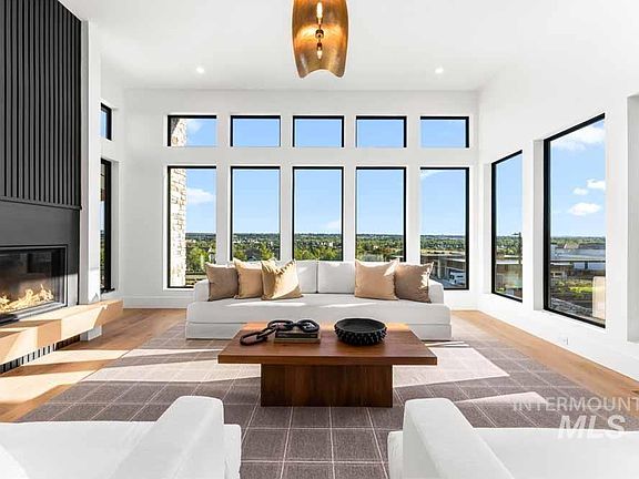 Striking modern architecture, brought to life by Teal Point Custom Homes. Set against the foothills with expansive valley views, every detail surpasses the standard of new construction. Inside, warm white oak flooring and smooth hand-plastered walls provide a sophisticated canvas for designer lighting & curated finishes. The showpiece kitchen is centered around a waterfall-edge marble island, complemented by two-toned cabinetry, stainless steel appliances, & paneled full-size refrigerator, freezer, & wine cooler. Retreat to the primary suite, where a spa-like bathroom awaits with dual vanities, a freestanding tub with a privacy wall, an oversized shower, & direct access to a private patio. True to Teal Point’s signature style, each bedroom includes its own en suite. Entertainment and work needs are met with a private home theater and a dedicated office. The sprawling outdoor covered living room is complete with a built-in kitchen for exceptional entertaining. Set in SE Boise just minutes from downtown Boise!