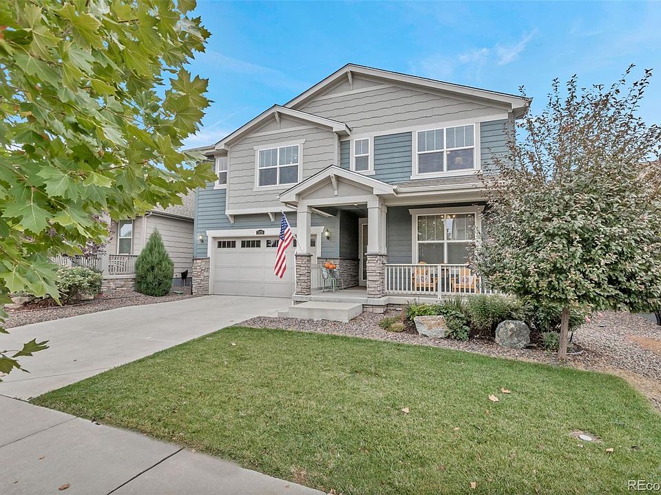 Welcome Home to this adorable 2 story home that offers one of the best floor plans with 5 bedrooms, 4 full bathrooms, a tandem 3 car garage, and a wonderful backyard that backs to an open greenbelt space. You are welcomed from the inviting front porch to the lovely foyer that leads past the open staircase to the great room, with cathedral vaulted ceilings, hardwood floors, a gas fireplace and floor to ceiling windows. The open and inviting floor plan extends into the kitchen with granite counters, large island, stainless steel appliances including a gas range, 42 inch cabinets, pantry, and dining area. The main floor also has a bedroom, full bathroom, and a mud room/tech center with a built in desk, cabinetry and granite counters. Upstairs is the primary bedroom suite that is generously sized with a tray ceiling, 5 piece luxury bath and dual walk in closets. There's also a guest suite with it's own private full bathroom, and there's also two additional bedrooms that share a jack and Jill bathroom and a conveniently located laundry room and a small loft in between. The unfinished basement offers plenty of storage and extra room to expand to your needs. Great Location close to Ute Creek Golf Course, Union Reservoir, parks, trails, shopping, dining and close proximity to I-25. Schedule your showing today and come see why you will want to make this your next home. You are invited to our Open House Saturday, October 11 from 12-3pm.