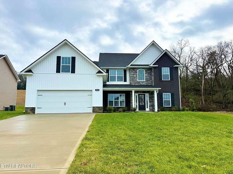 New Construction by Smithbilt Homes featuring The Montgomery floor plan in The Farm at Riverbend. This plan offers 5 bedrooms, 3.5 bath and bonus room. Finishes included are 5'' baseboards and stainless steel appliances. Upgrades include Oak Treads and Painted White Risers, 12 x 16 Covered Patio, Tile Shower in Master, Gas Tap in Kitchen