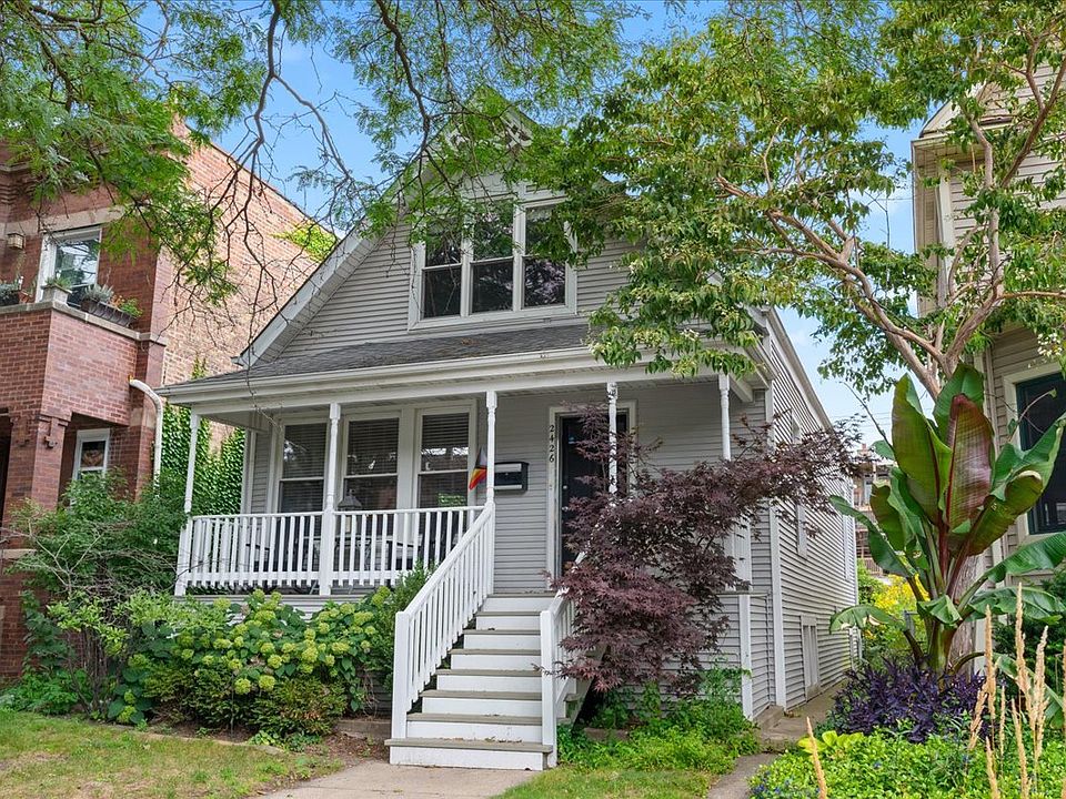 Welcome to this updated single family home in Lincoln Square. Enter first from the charming front porch into the home, where on the main level the open layout features a cozy living room, separate dining room, huge kitchen and attached breakfast nook. This 2018 updated kitchen features custom cabinets, stainless steel appliances, farm sink, quartz counters, large waterfall island and tons of storage. And you'll enjoy breakfast in the adorable nook with built-in booth right off the kitchen. Adjacent to the living room is a first floor office/bedroom with full bathroom. The second floor features the primary bedroom with skylights and custom solar shades bringing in tons of natural light. There is one bathroom on this level, which has a walk-in fully tiled shower, skylight and great storage. Additionally, there is a small second bedroom currently used as a nursery. Back downstairs, the finished basement has a super cozy family/media room with theatre seats as well as the 4th bedroom, full bath with walk-in shower, flex room for storage and laundry room with side by side W/D. This home is situated on an oversized 30 x 150 lot with a large deck off the mudroom, huge back yard, welcoming outdoor patio and two-car garage. Winona is a quiet tree-lined street close to tons of restaurants, shopping and all Lincoln Square has to offer.