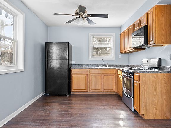 This charming 2-bed, 1-bath home is sitting in a prime location! It is walking distance from the train station and just a short drive to the expressway, making your commute a breeze. Also, it's in close proximity to the brand new casino, adding entertainment options right at your doorstep. This home boasts a cozy yet functional layout, a boiler heating system providing even heat throughout and a pull down attic stairway for easy access to storage. Outside in the fully fenced-in yard is a large patio area and garage. The garage is finished and insulated adding tremendous value, offering both additional storage and a comfortable space for hobbies, entertainment or projects year-round. Whether you're looking for a home with convenient access to transport, local amenities, or just a comfortable space to call your own, this home has it all!