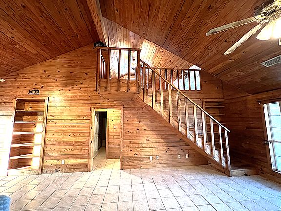 Open floor planSurrounded by treesWood deckWood cabin