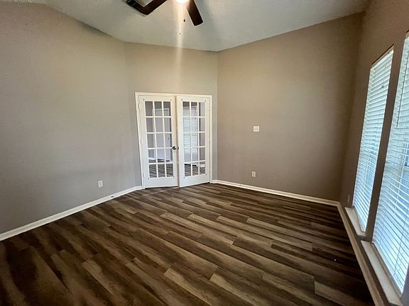 Located in Spring, near The Woodlands, this property offers 3 bedrooms and 2 baths. Upon entering, you're welcomed into the living room connected to a study, featuring French doors and windows that allow natural light to flood the space. Moving through the living room, you'll find the kitchen and breakfast area, equipped with a microwave and gas grill stove top. The kitchen opens up to a versatile dining or flex room, perfect for various uses. The primary bathroom boasts a separate shower and bath, along with a walk-in closet. The other two bedrooms share a full-sized bathroom and provide ample closet space. Outside, the backyard features a covered patio area and is fully fenced, offering a private retreat for relaxation or entertaining.