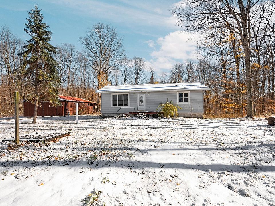 Location, location, location! Discover peace and privacy at this beautifully wooded 10-acre property just minutes from downtown Bellaire. This well-built 2-bedroom, 1-bath ranch offers 884 square feet on the main level plus an additional 884 square feet in the unfinished walkout lower level—perfect for future expansion or storage. Built in 1982, this solid stick-built home features a comfortable layout with scenic views of the surrounding hardwoods. The basement opens to the backyard, offering plenty of potential for outdoor living or additional finished space. A 40' x 32' wood pole barn provides ample room for vehicles, tools, and recreational gear—ideal for hobbyists, storage, or a workshop. Enjoy the tranquility of nature while still being less than 5 miles from Bellaire’s shops, restaurants, and the popular Short’s Brewing Company and the Upper and Lower Chain of Lakes.