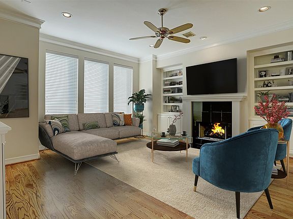 Price to sell! Great opportunity to live in Mid town minutes away from River Oak and Montrose restaurants. The inviting floorplan offers beautiful hardwood floors throughout along with crown molding. A first-floor bedroom/study with a private full bath and with access to the patio . The second level boasts the spacious living room with picture windows, and a delightful fireplace. Enjoy the natural lights in the breakfast room open to the cozy kitchen with granite counters and built in appliances. The third level offers the master suite with a large elegant bath, two sinks, relaxing tub and separate shower. Large master bedroom with and his/her closet. A secondary bedroom with private bathroom and walk in closet. Roof terrace at the four floor to get fresh air and barbecue. Recent updates : HVAC in the second level. Fresh Paint. Refrigerator, washer and dryer included. Minutes away from great restaurants and stores. Parking available along Missouri Street. Must see!