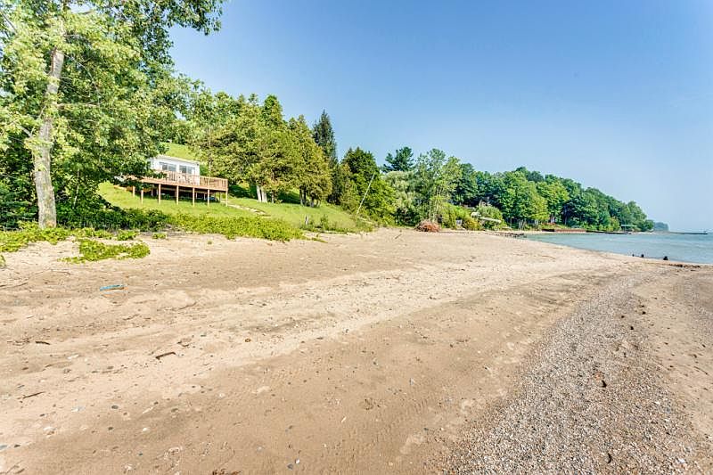 300 feet of lake front, 4 acre of property, beach house, caboose in the woods, two bedroom ceded sided house in the woods, swimming pool with pool house kitchen and bathroom, three bedroom main house with two car attached garage , fire place, living room, dining room, kitchen, first floor recreation room.