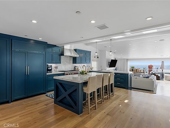 Perfectly positioned on one of Hermosa Beach's most coveted streets, this residence embodies the essence of beach living steps from the ocean, fine dining, boutique shopping, and award-winning schools. This stunning 4-bedroom, 5-bath single-family home with panoramic ocean views was designed for effortless entertaining and everyday luxury. The main living level showcases dramatic ocean views from the living room, dining area, and gourmet kitchen. Expansive glass doors open to a spacious ocean-view deck that blends indoor and outdoor living. The chef's kitchen features premium appliances, a walk-in pantry, and an elegant built-in bar adjacent to the dining area, ideal for hosting with style.