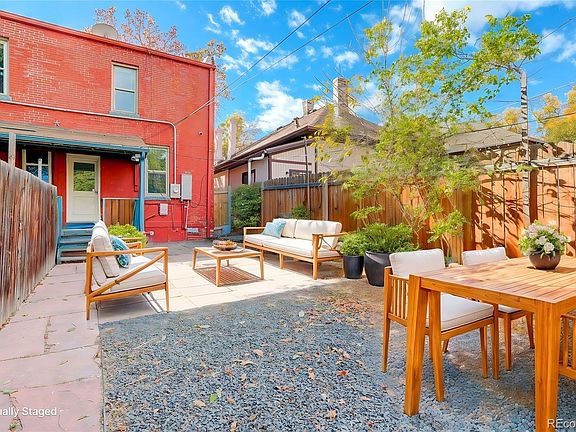 This 3+ bedroom, 2 bathroom gem combines classic charm with modern amenities. As you step inside, the classic row home exterior invites you into a warm living space adorned with original hardwood floors, it then opens up to a dinning room, then into the kitchen. It comes equipped with a full suite of appliances, including a smart refrigerator, gas stove/oven, microwave, and dishwasher. Out side the kitchen door it opens up to a private backyard oasis, complete with a flagstone patio perfect for outdoor dining. On the second floor, you'll find a primary bedroom with dual closets, a secondary bedroom, and a third bedroom/office space(3rd bed room has no closet space FYI). A full bath completes the upper level. The cellar includes a full-size washer and dryer along with ample storage space. Located just a short stroll from Denver's finest restaurants, coffee shops, and boutiques, this home offers the best of both comfort and lifestyle.