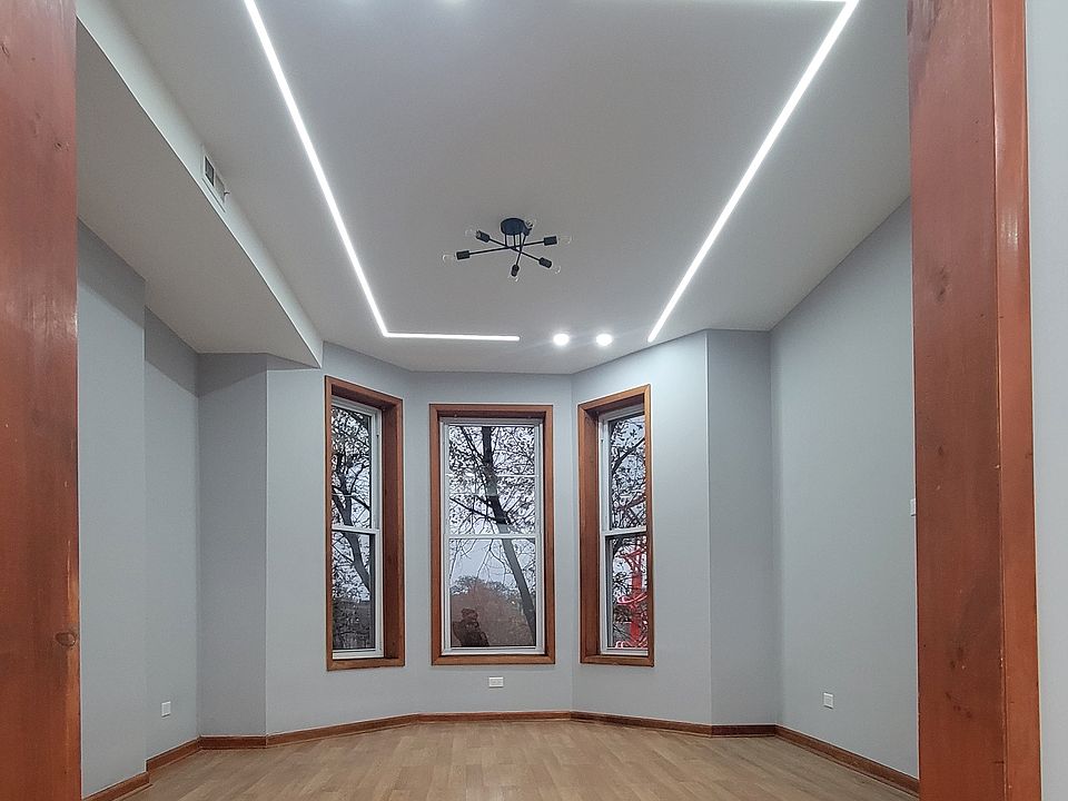 Recently renovated top-floor front 2-bedroom, 1-bath residence ideally situated between Humboldt Park, Wicker Park, and Ukrainian Village. Features include soaring high ceilings, hardwood floors, a stylish French door partition, and beautiful recessed accent lighting. The kitchen is equipped with all new appliances, complemented by updated A/C and forced gas heating. In-unit laundry, ample storage, and digital-controlled lighting and fans in the bedrooms add convenience. The spacious master bedroom boasts a walk-in closet. Enjoy the proximity to the park, the vibrant restaurant and bar scene along Division Street, and the boutique shops on Milwaukee Avenue.