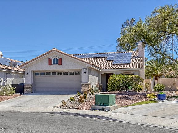 Beautiful single-story home in the desirable Pebble Creek community of Green Valley! This 3 bed, 2 bath home offers a well-designed space with a hot tub, energy-saving solar panels, and great curb appeal. Located near top-rated schools, parks, shopping, and dining. Enjoy a quiet neighborhood feel with a low monthly HOA and a true sense of community. Don’t miss this opportunity in a prime Henderson location!