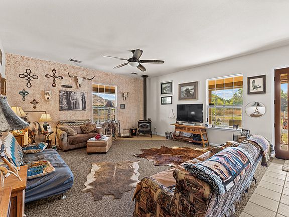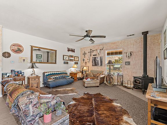 Tucked away among peaceful orange groves with sweeping views of the foothills, this 19.36-acre country estate offers the kind of privacy and calm that's hard to come by. The 3-bedroom, 2-bath home welcomes you with a wraparound covered porch — perfect for taking in those mountain views or enjoying quiet mornings outdoors. Inside, you'll find a spacious living room anchored by a wood burning stove and an open-concept kitchen that makes everyday living easy. The kitchen features granite counters, a breakfast bar, island, pantry, and a cozy nook for casual dining. Just off the main living space is a functional laundry/mudroom complete with a sink and extra storage. The primary suite offers a large walk-in closet, private access to the yard, and a relaxing ensuite with dual sinks and a step-in shower. Two additional bedrooms provide comfortable space for guests or family. The finished attic adds flexibility for a home office, studio, additional storage, or bonus area with an additional 582 SqFt upstairs, not included in the listed footage. Outdoors, there's plenty of room to roam — fenced pastures, a pole barn, and acreage ready for horses or livestock. Plenty of room for a orchard or whatever else your heart desires! Whether you're looking for a serene lifestyle or a working ranch setup, this property captures the best of rural living. Must see to truly appreciate the location, residence and all this wonderful property has to offer!