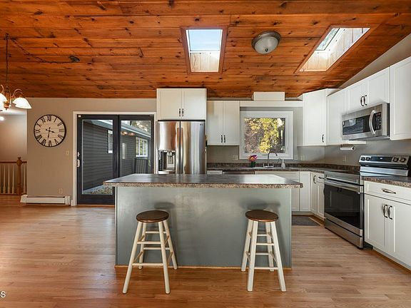 This updated raised ranch is packed with potential, featuring an open-concept living area, a spacious primary suite with its own bath, a bathroom and two additional bedrooms on the main floor. The finished basement has two family rooms, one has a wet bar and plenty of room for a pool table or game area. A fourth bedroom and a bathroom/laundry room are also found in the basement. Walk out to a private fenced yard with mature trees, a shed, a patio, and a deck. Take advantage of an 18' x 25' pad ready for a future shop or extra parking. Plus, there's ample storage above the garage! Inspection has already been completed and available to interested buyers!