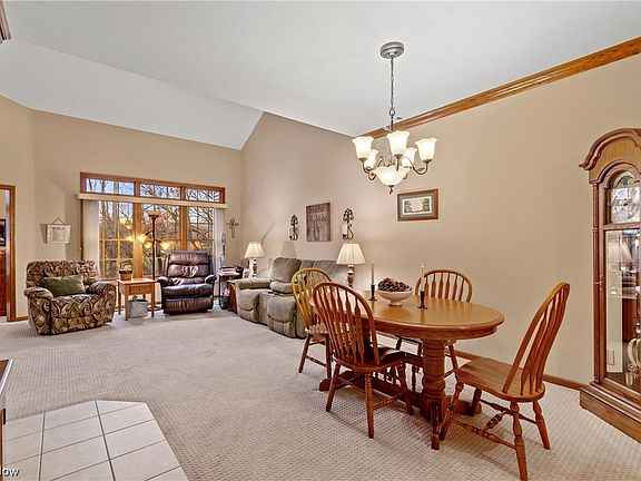 Nestled amidst a serene wooded backdrop, this condo beckons its occupants with an array of captivating features. Step inside the welcoming foyer that leads to a cozy eat-in kitchen, where gleaming stainless steel appliances, illuminating cabinet lighting, and a charming kitchen table by the window create a delightful haven perfect for quick bites. An open passthrough seamlessly connects the kitchen to the dining room, facilitating effortless entertaining. The dining room and living room seamlessly blend into an open concept layout, exuding an aura of spaciousness and harmony. In the living room, a vaulted ceiling adds a touch of comfortable luxury, while a cozy gas fireplace and a large window overlooking the private backyard exude warmth and tranquility. From the living room, a passage leads to a warm den, featuring a large window and sliding doors that unveil a serene screened back porch, where you can immerse yourself in the beauty of nature as deer and birds frolic in the surrounding woods. Conveniently situated on the first floor, the laundry room offers added practicality, while the spacious master suite beckons with a walk-in closet and an en-suite bathroom adorned with shower, Jacuzzi tub, and ample cabinet space. Ascend to the second floor to discover a charming loft with a small walk-in closet, full bath, and serene bedroom. The lower level is a haven of possibilities, boasting a spacious recreation room, a bonus room, and an additional room brimming with built-in storage, providing ample space for entertainment, hobbies, or relaxation. This exceptional condo is an oasis of comfort and warm livability, inviting you to embrace a lifestyle of convenience and serenity.
