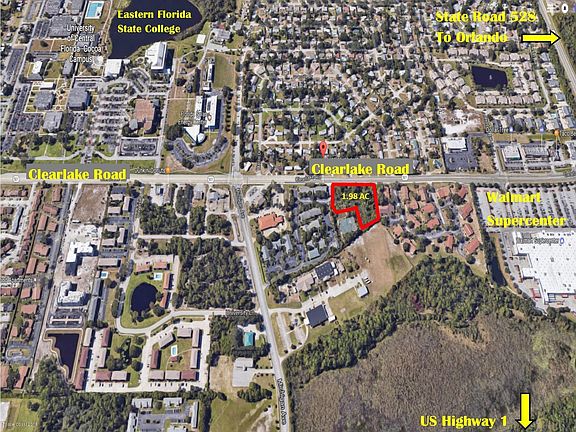 Designated future high-speed rail station directly north at Clearlake Road and StateRoad 524, pending final TPO approval. 1.98-acre parcel nestled in the middle of a dynamic market with 550,000 Sq Ft. of retailwithin 1/2 mile. Zoned Neighborhood Commercial - permitted uses include (but not limited to:) hotel/motel, community center, child care facility, office/financial institutions. art studio,veterinary facility. 332' of frontage on Clearlake (SR 524), 277' deep to the north, 176' deep on the southside. City of Cocoa utilities, electric available, multiple broadband and fiber option available Traffic count: 16,319 AAD Tax ID#:2413503 / RE Taxes: $1729.08 /Parcel ID: 24-36-17-00-514