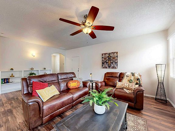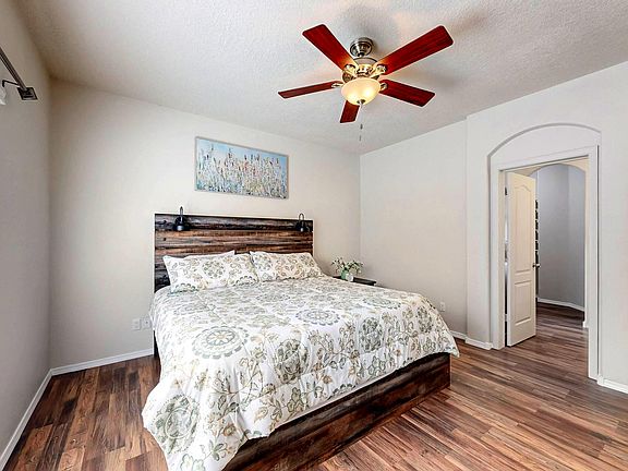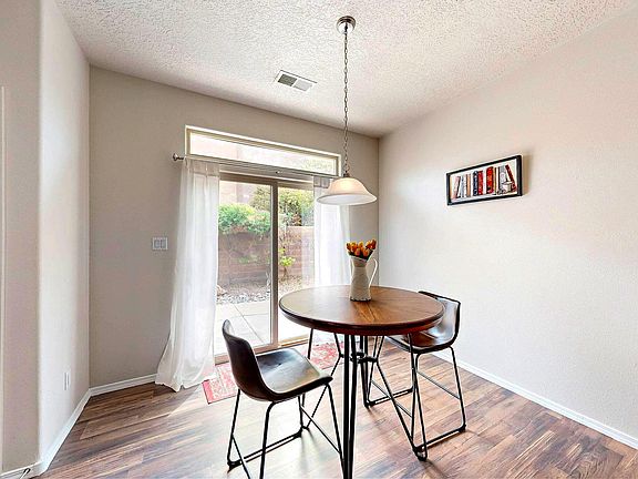 Check out this awesome 2-bedroom, 2-bath casa in Rio Rancho's gated community of Astante Townhomes! One of the rare single-family detached listings in this Cabezon neighborhood, this gem offers a spacious, open-concept great room perfect for both relaxing and entertaining. With zero carpet throughout, the home feels sleek and low-maintenance. The kitchen boasts granite countertops, rich birch espresso cabinetry, and modern finishes, while the generously sized primary suite includes an en suite bath for added privacy. Step outside to a private, fully landscaped backyard with a charming sitting area and a wonderful neighborhood park across the street. Whether you're downsizing, buying your first home, or looking for a lock-and-leave lifestyle, this home is move-in ready and waiting for YOU!