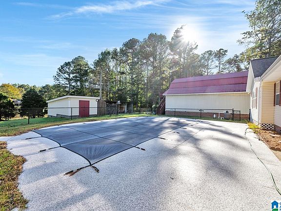 New metal barnUnfinished basement roomFenced backyardLarge detached three-car garageSpacious covered sunroomAdditional loft storageIn-ground saltwater pool