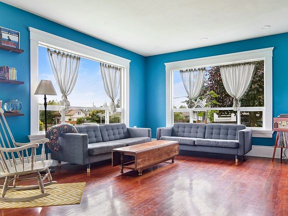 Neatly maintained early 1900s home in core Bellingham neighborhood near Barkley & Sunset, close to all amenities and minutes from downtown. Original hardwood floors through main living area, which also features a cozy airtight woodstove. Spacious kitchen with plenty of cabinets and counterspace. French doors lead from kitchen to back deck looking over fully-fenced yard. One bedroom downstairs and three carpeted bedrooms upstairs, plus the nooks and crannies often found in vintage homes.