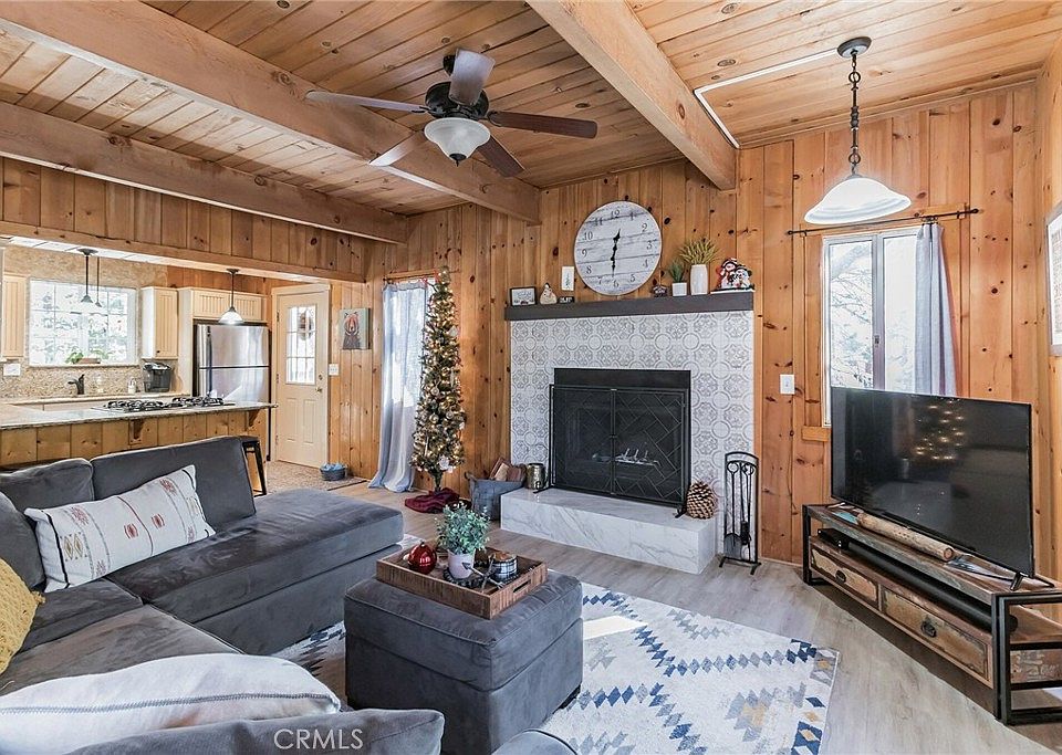 Stunning light, bright, and airy cabin located in quaint Arrowbear Lake. This charming two-bedroom, 1 ½ bath home is perfect for full-time living or a vacation getaway. Sit by a cozy fire, sip something warm, and watch the snow fall through the large picture windows. Whip up something tasty in the modern kitchen, complete with a gas stove, stainless appliances, and ample cabinetry. The living area is open to the kitchen, so family and guests can mingle. Each floor has an updated bath, an adorable half bath on the main floor, and a beautiful full bath upstairs. There is also a stackable washer/dryer on the main floor. Both bedrooms on the upper floor are generous, and the main bedroom has a sliding glass door that leads to a balcony with a gorgeous view of the national forest. The backyard is very spacious! Perfect for barbecues, children, and pets! The town of Arrowbear is centrally located between Lake Arrowhead and Big Bear, and close to everything there is to enjoy in the mountains, from boating to skiing! It’s minutes from Snow Valley and boasts a seasonal lake, and a beautiful park. Don’t miss your chance to make this turnkey, pristine home your own!