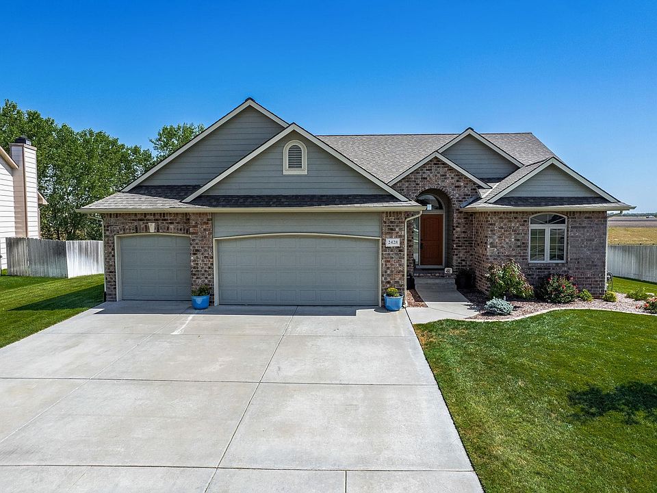 Welcome home to this 2011 custom built home that boasts 5 bedrooms, 3 baths, and almost 3000 square feet! As you walk into this beautiful custom built home, you’ll immediately notice the quality craftsmanship, the hand scraped hardwood floors, fresh paint throughout, and the beautiful split floor plan. The living room is large and spacious with HUGE windows overlooking your beautiful backyard. The kitchen is full of knotty alder cabinets and offers granite counters, and a hidden pantry! The two bedrooms and full bath are bright and spacious. The master suite is amazing. You’ll love the large room with loads of natural light, the master bathroom that feels more like a spa with granite counters, double sinks, separate shower and tub, and walk-in closet. The master also walks through to the laundry room - how convenient! Downstairs, you’ll find the perfect spot for entertaining. The large family room with a pool table and wet bar are perfect for watching football games and movie nights! The basement is rounded out by two additional bedrooms, a full bath, and a large storage room. You’ll love drinking coffee on your large covered deck, overlooking your LARGE backyard with extended concrete off the deck. Between the three car garage and the 12x16 shed, you’ll have plenty of storage. This home is located in far west Wichita in the Southwest Passage subdivision. Southwest Passage is a small neighborhood in the Goddard school district with large lots and beautiful custom built homes. Schedule your showing today - this one won't last!